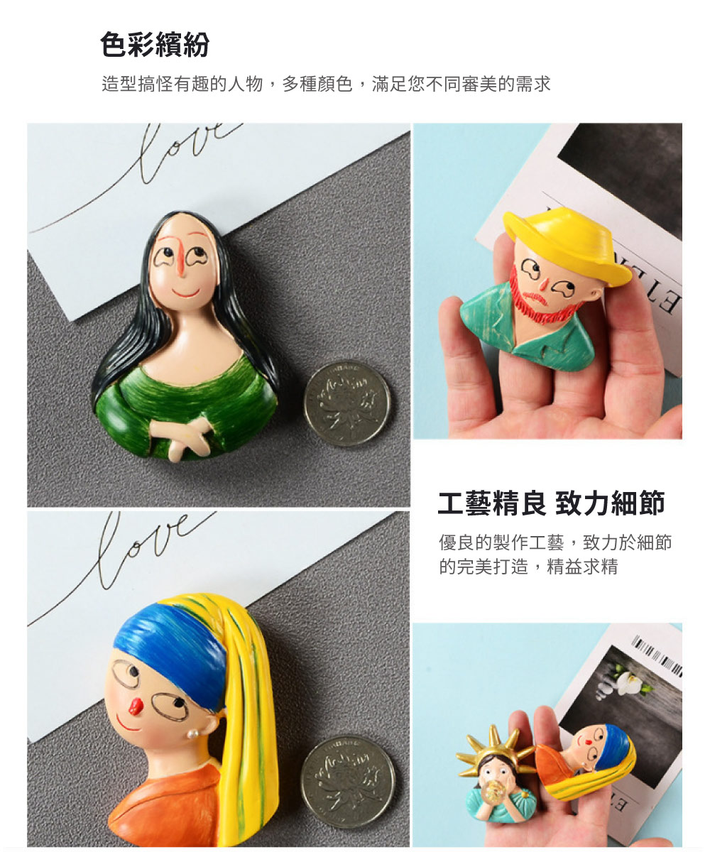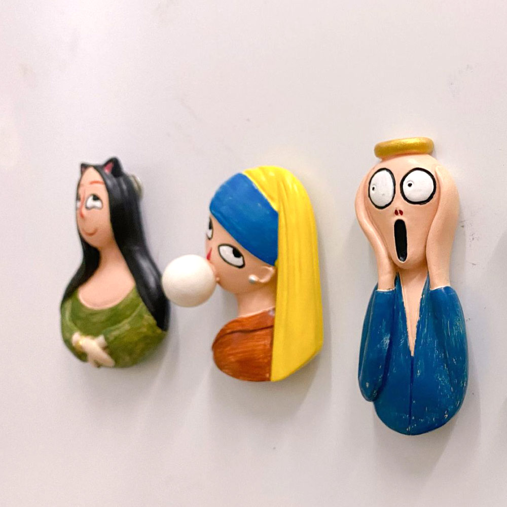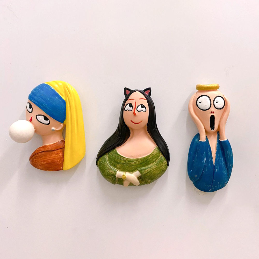 【台灣現貨】世界名畫冰箱貼 蒙娜麗莎 梵高 吶喊 戴珍珠耳環的少女 搞怪世界名畫樹脂磁性冰箱貼 白板黑板貼 辦公室