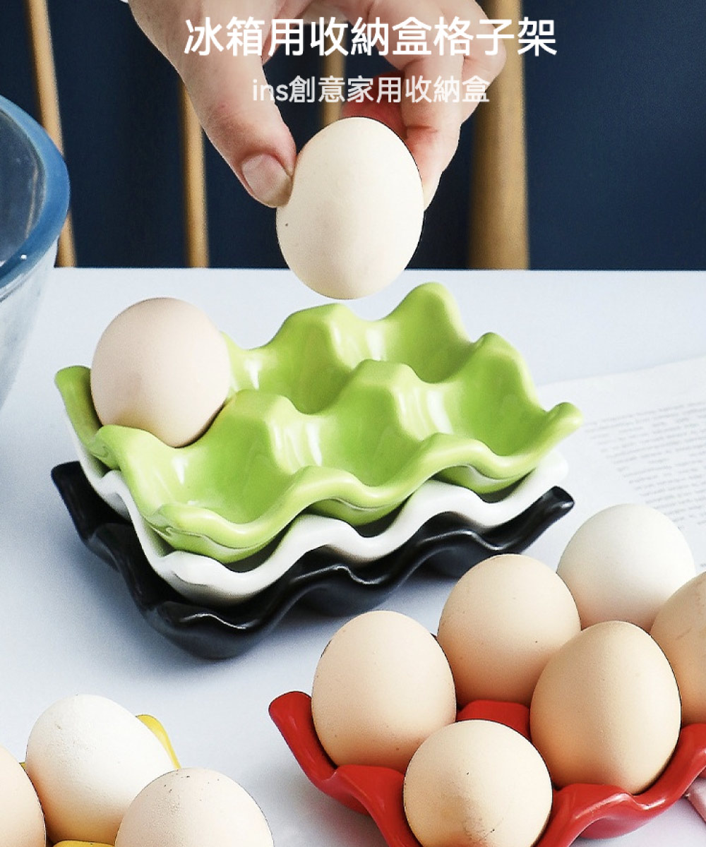 【台灣現貨】陶瓷雞蛋分隔盤 北歐風雞蛋分隔盤 廚房冰箱收納盒 蛋架陶瓷雞蛋托 6格雞蛋架 收納盒 收納盒 雞蛋架
