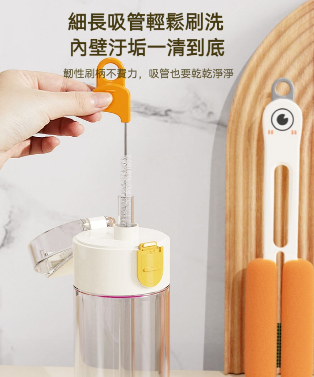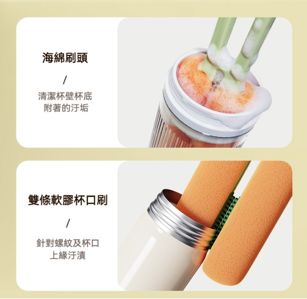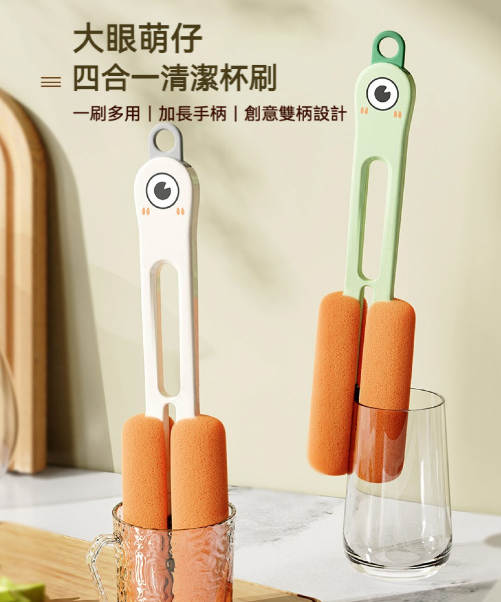【台灣現貨】大眼雙頭杯刷 水杯清洗刷子 專用四合一多功能刷 杯子廚房清潔杯蓋刷 清潔刷 廚房清潔刷 水壺刷 加長刷子