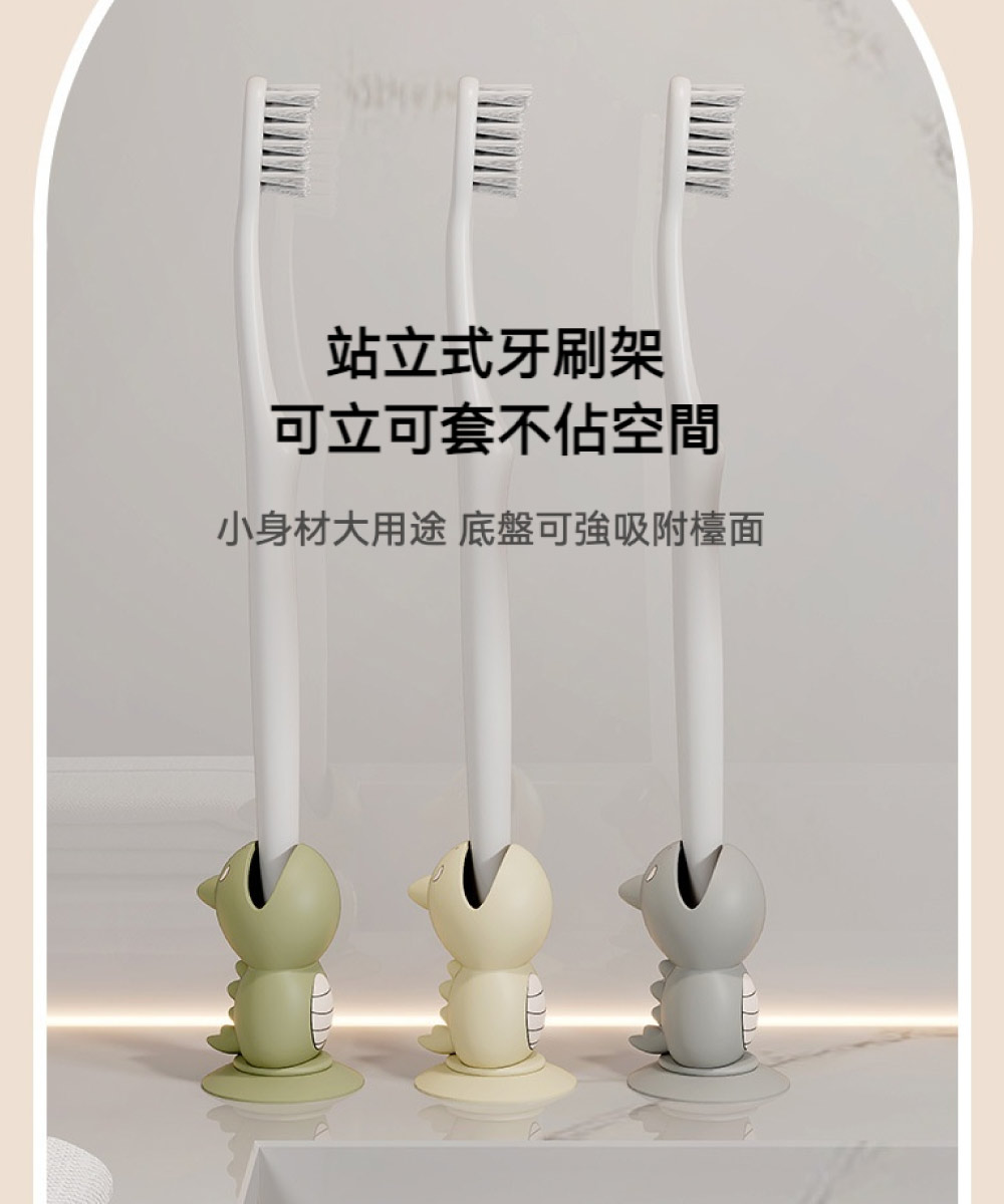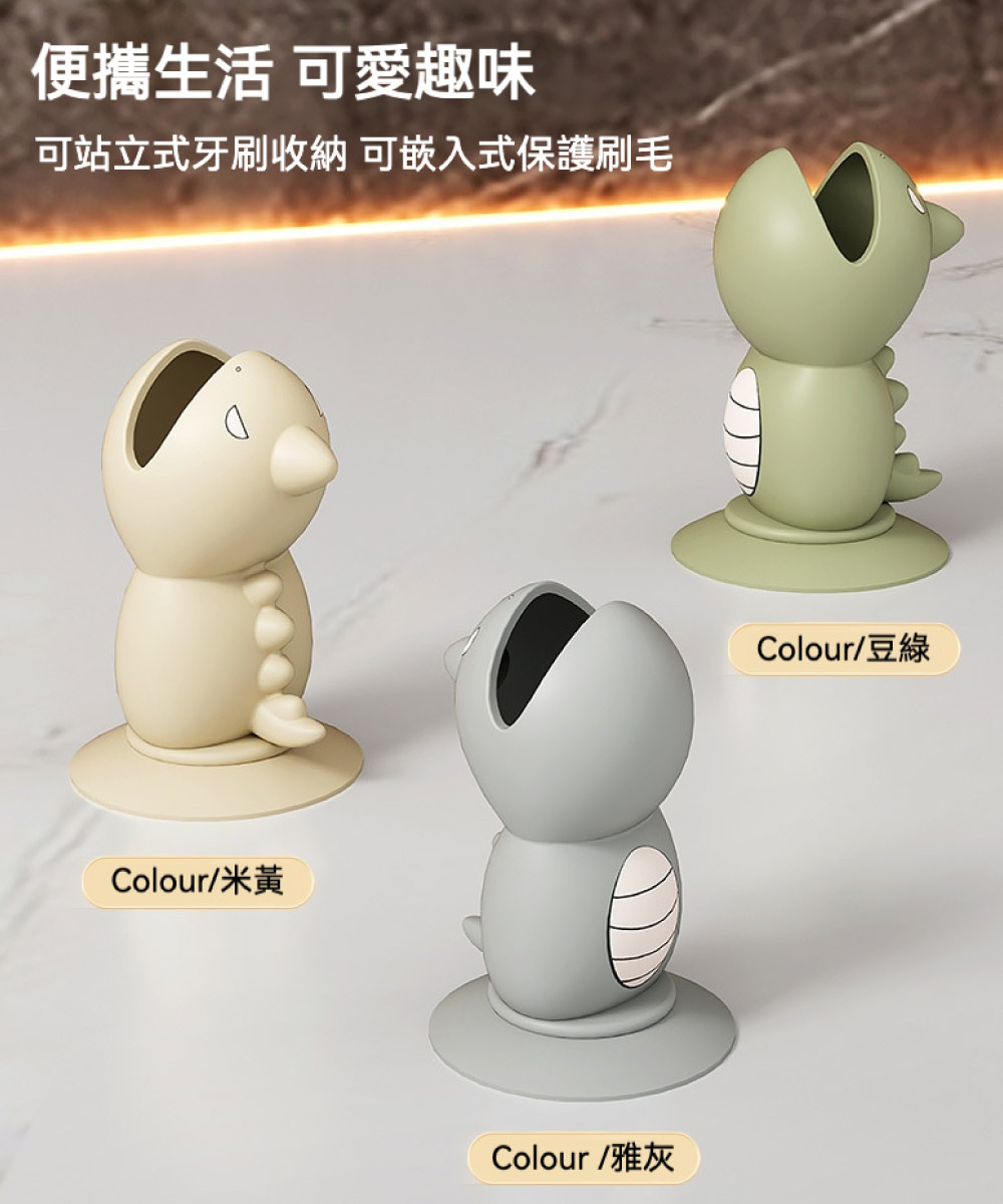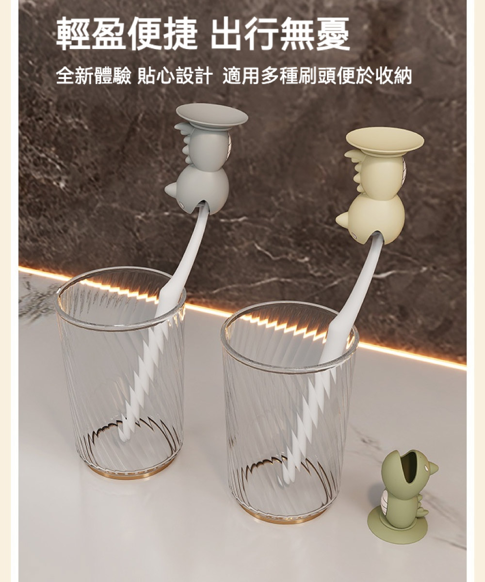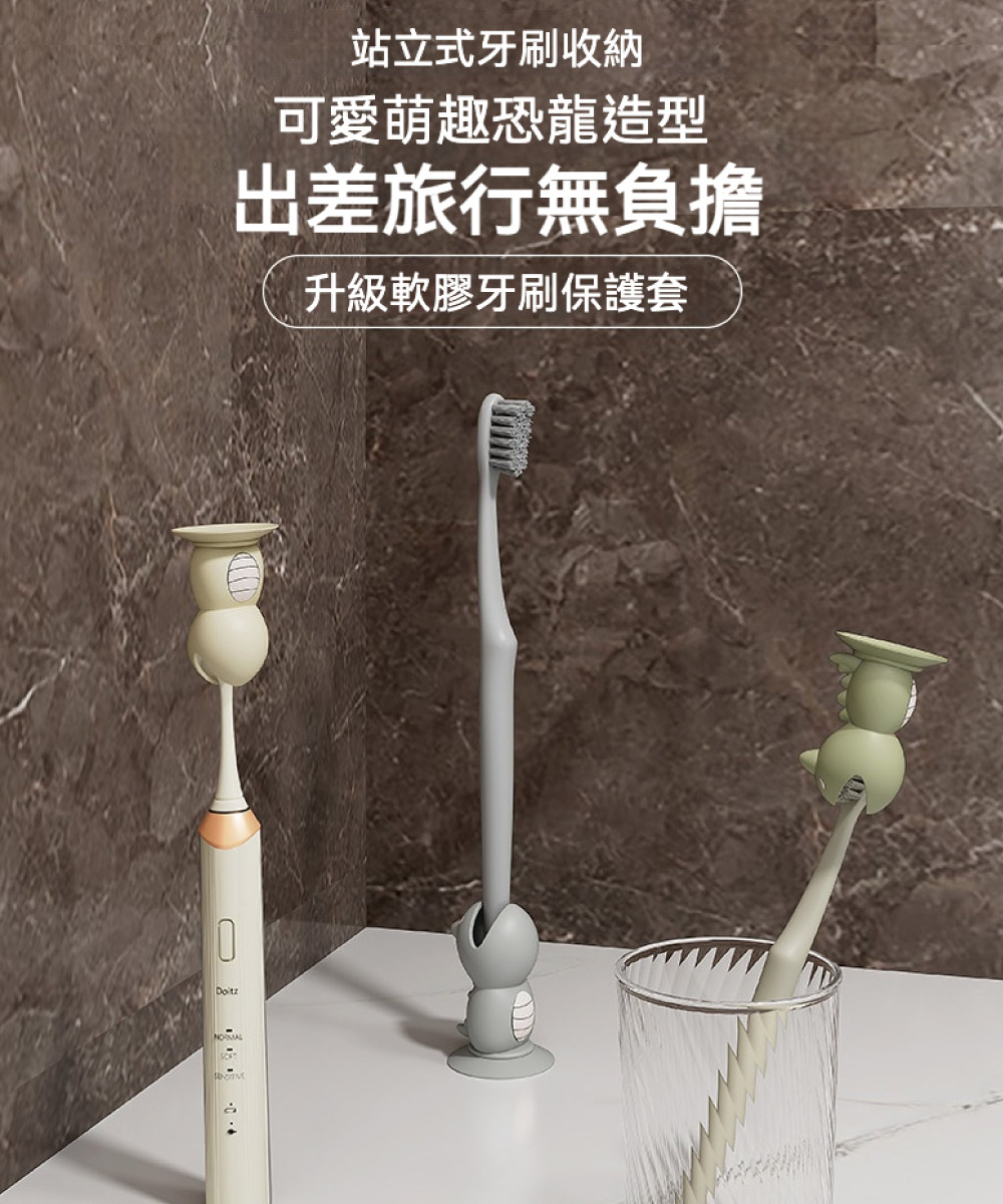 【台灣現貨】矽膠牙刷保護套 家用帶吸盤 防塵桌面牙刷架 多功能旅行便攜牙刷套 牙刷收納 站立式收納 恐龍造型 站立式