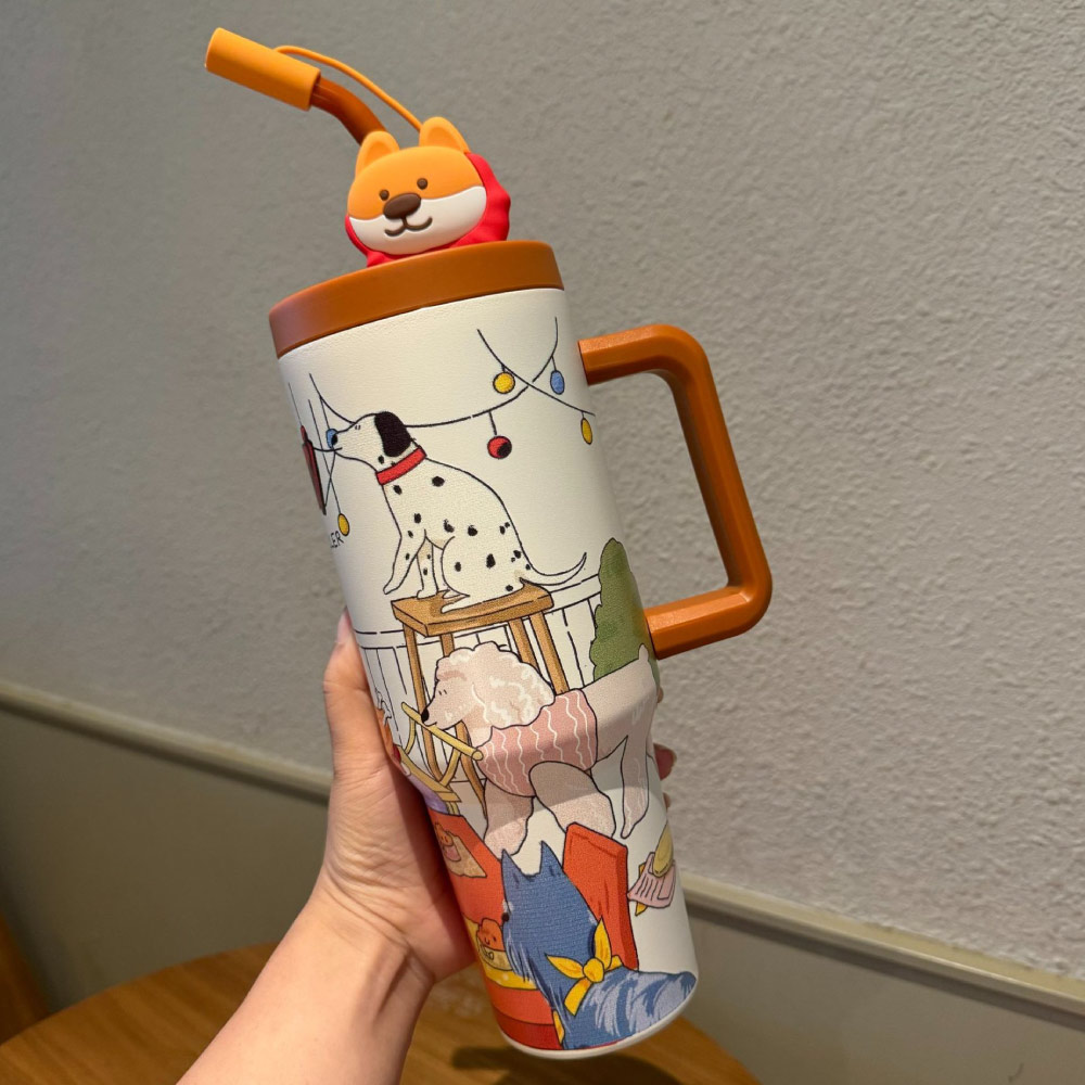 【台灣現貨】高顏值保溫吸管冰霸杯 1200ml大容量保溫保冰 飲料冰霸杯 汽車冰霸杯 保溫杯手柄 汽車夏天吸管水杯