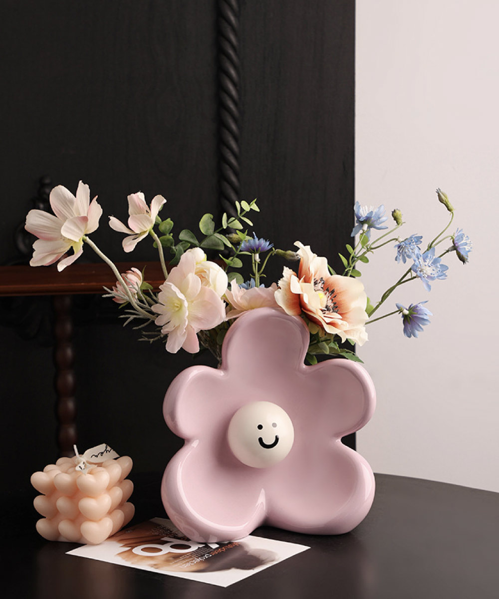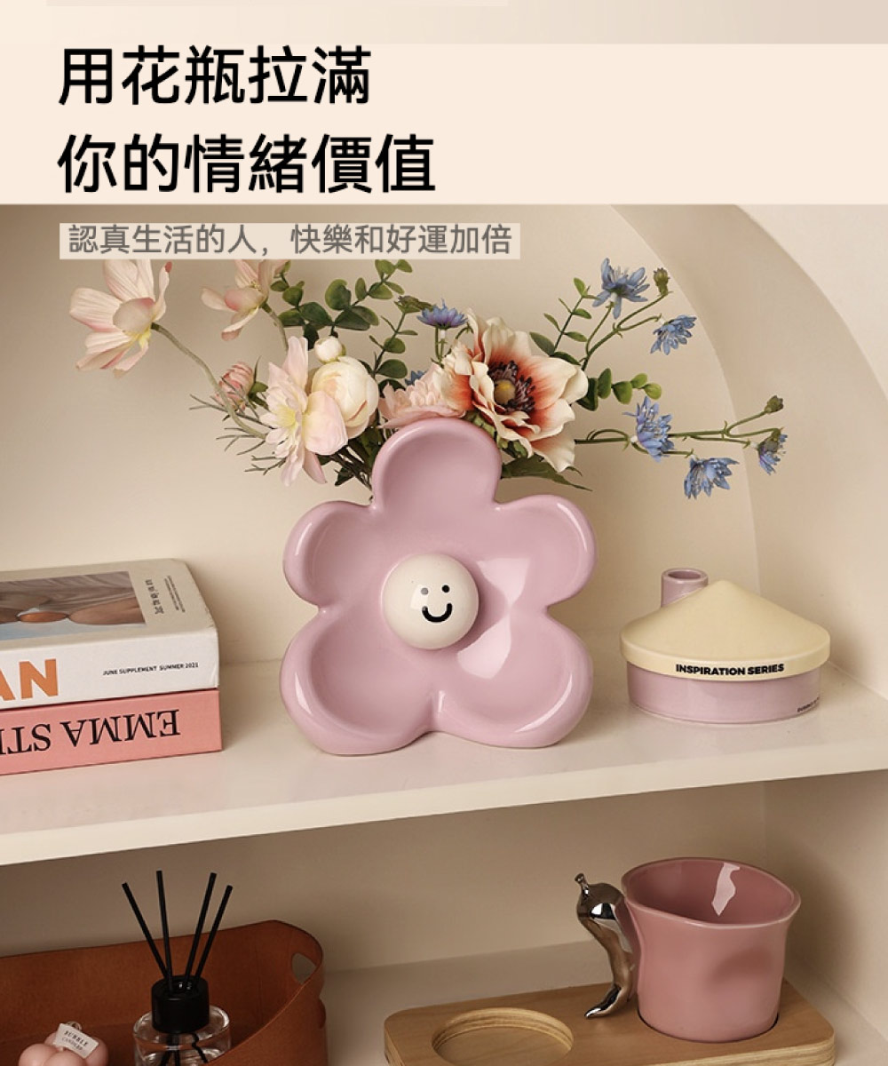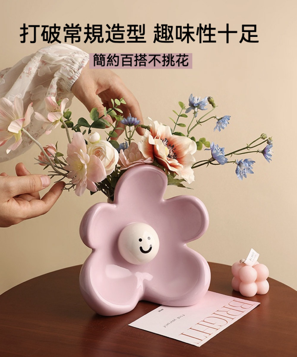 【台灣現貨】陶瓷花朵笑臉花瓶 ins風花瓶 高顏值花瓶 玄關客廳擺件 家居裝飾擺件 喬遷禮物 交換禮物 植物花瓶 療癒