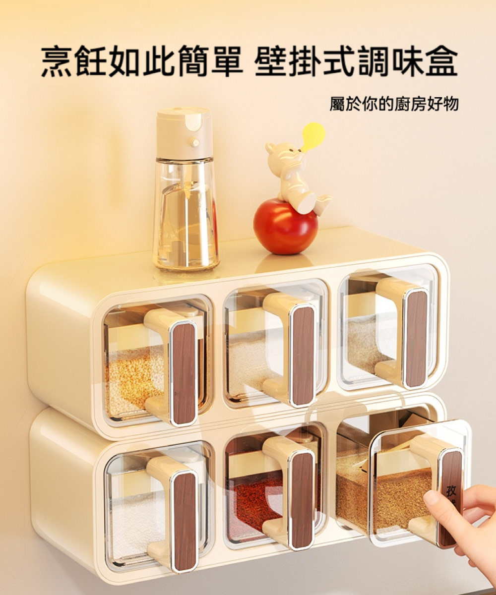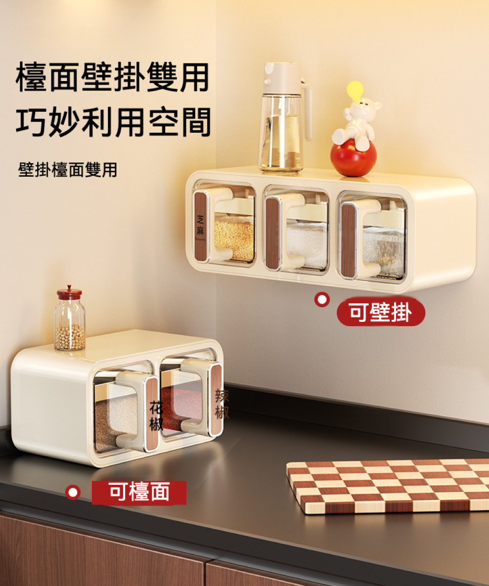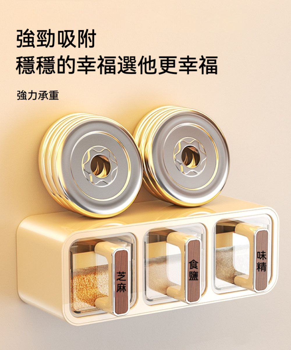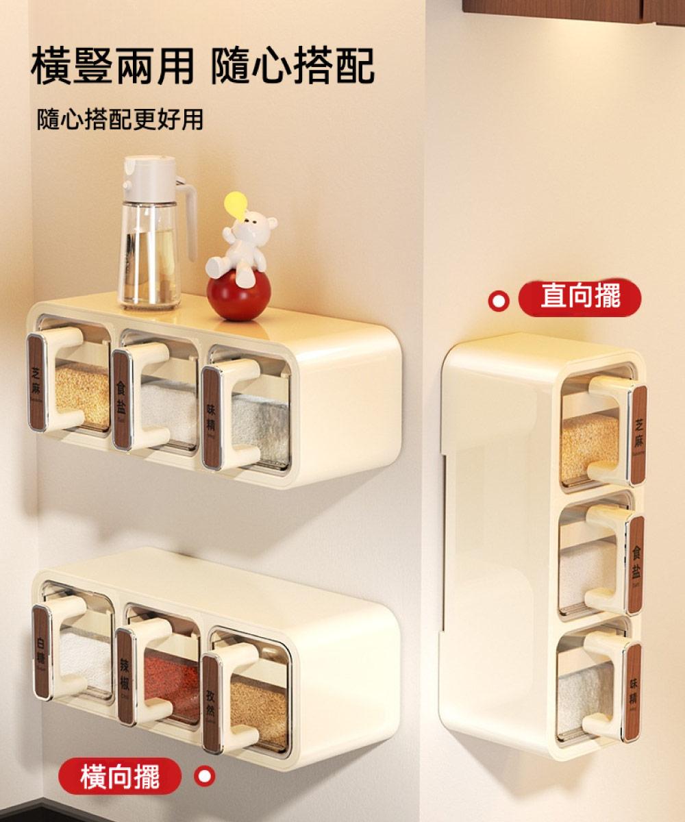 【台灣現貨】家用調料盒置物架 三格 多格一體 鹽罐調料罐 調料收納盒 壁掛式廚房 家用調味罐調味盒 調味罐 壁掛調味罐