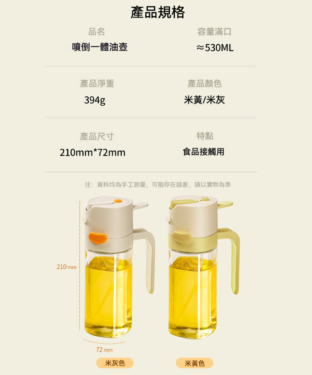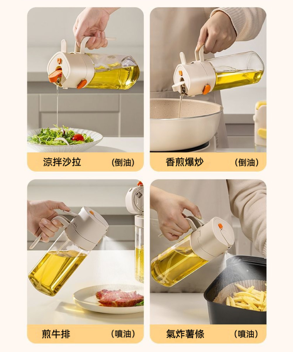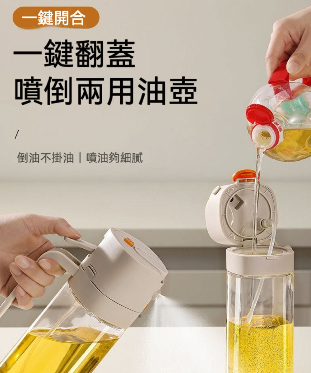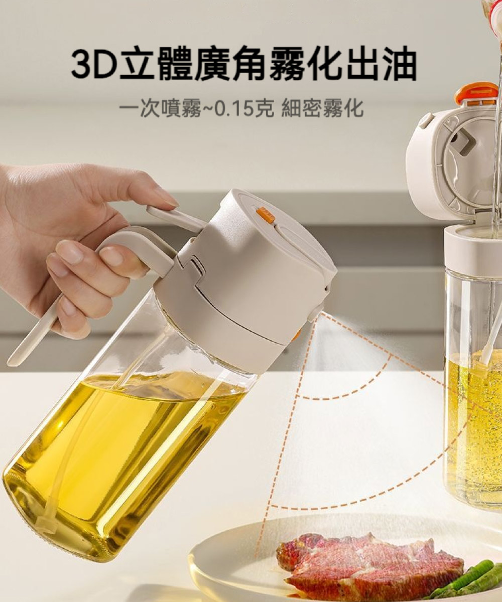 【台灣現貨】兩用噴油壺 廚房油壺 廚房家用 噴油瓶 不掛油霧化 一體玻璃噴壺油瓶罐 倒噴兩用油瓶 油罐 油瓶 噴霧油