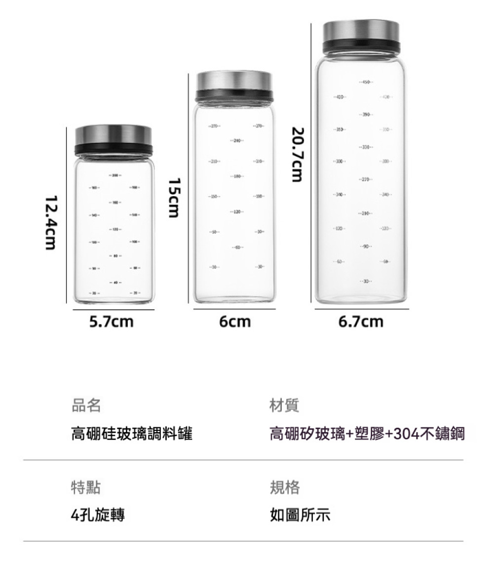 【台灣現貨】高硼硅玻璃調料罐 調味瓶 家用燒烤灑粉灑料瓶 廚房調味罐 定量調味罐 調味罐 胡椒罐 鹽巴罐 辣椒粉罐