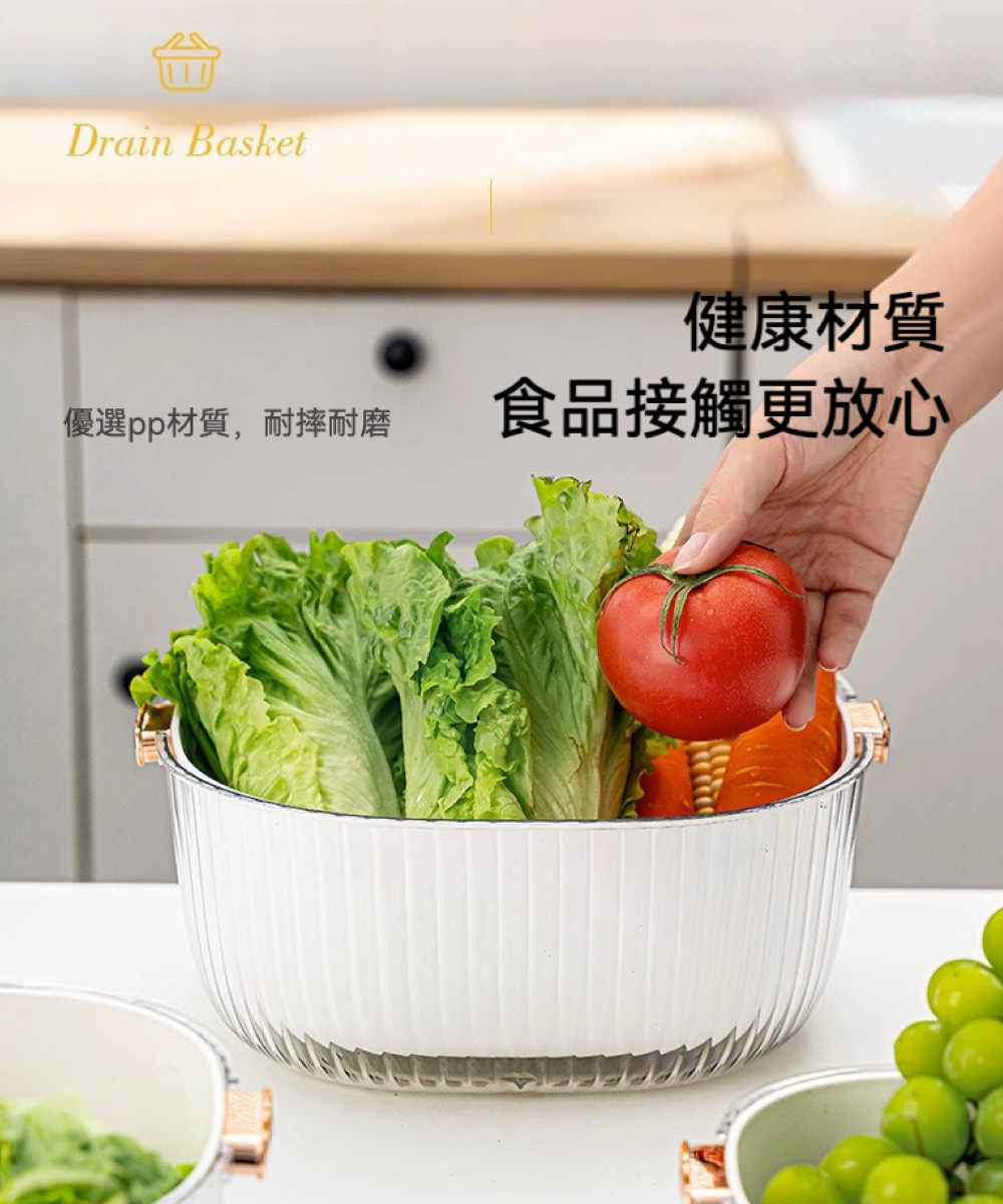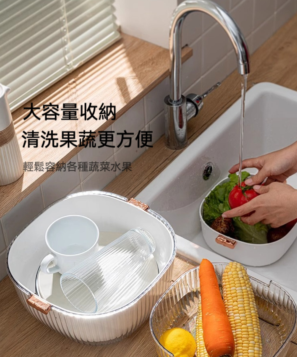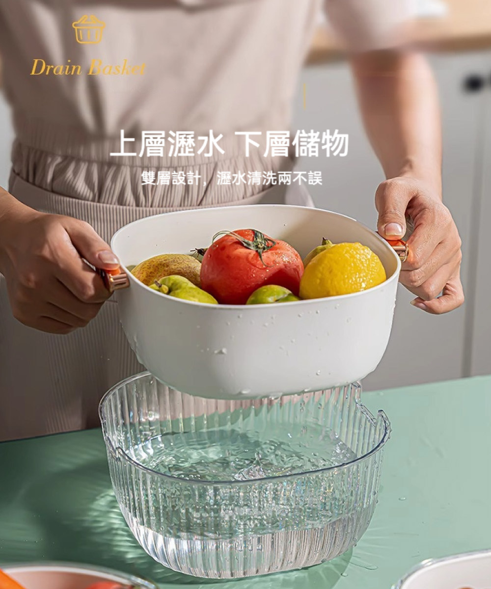 【台灣現貨】家用濾水洗菜盆 水果盤客廳家用濾水洗菜籃 茶桌洗米神器雙層 洗米盆 瀝水盆 廚房洗菜籃 雙層洗菜籃 濾水籃