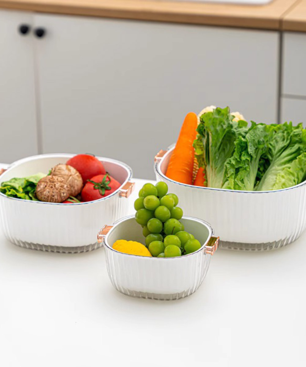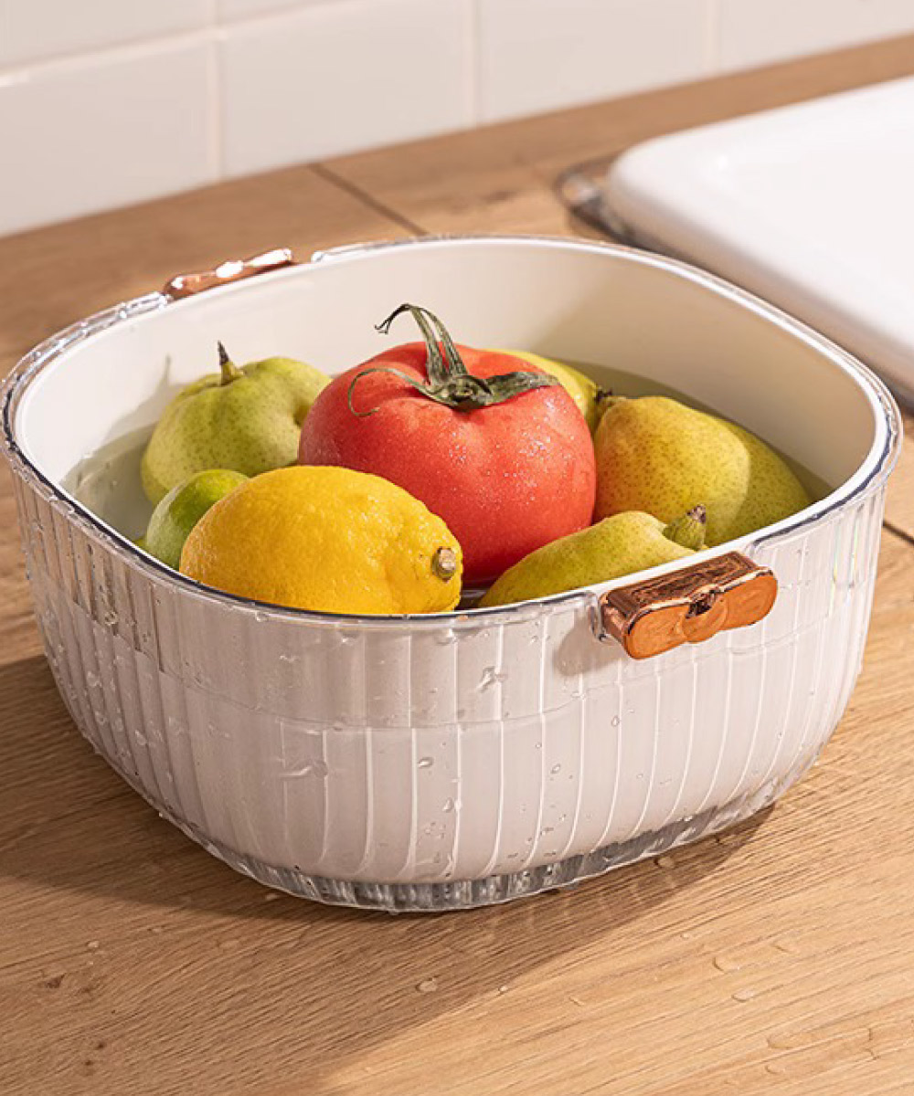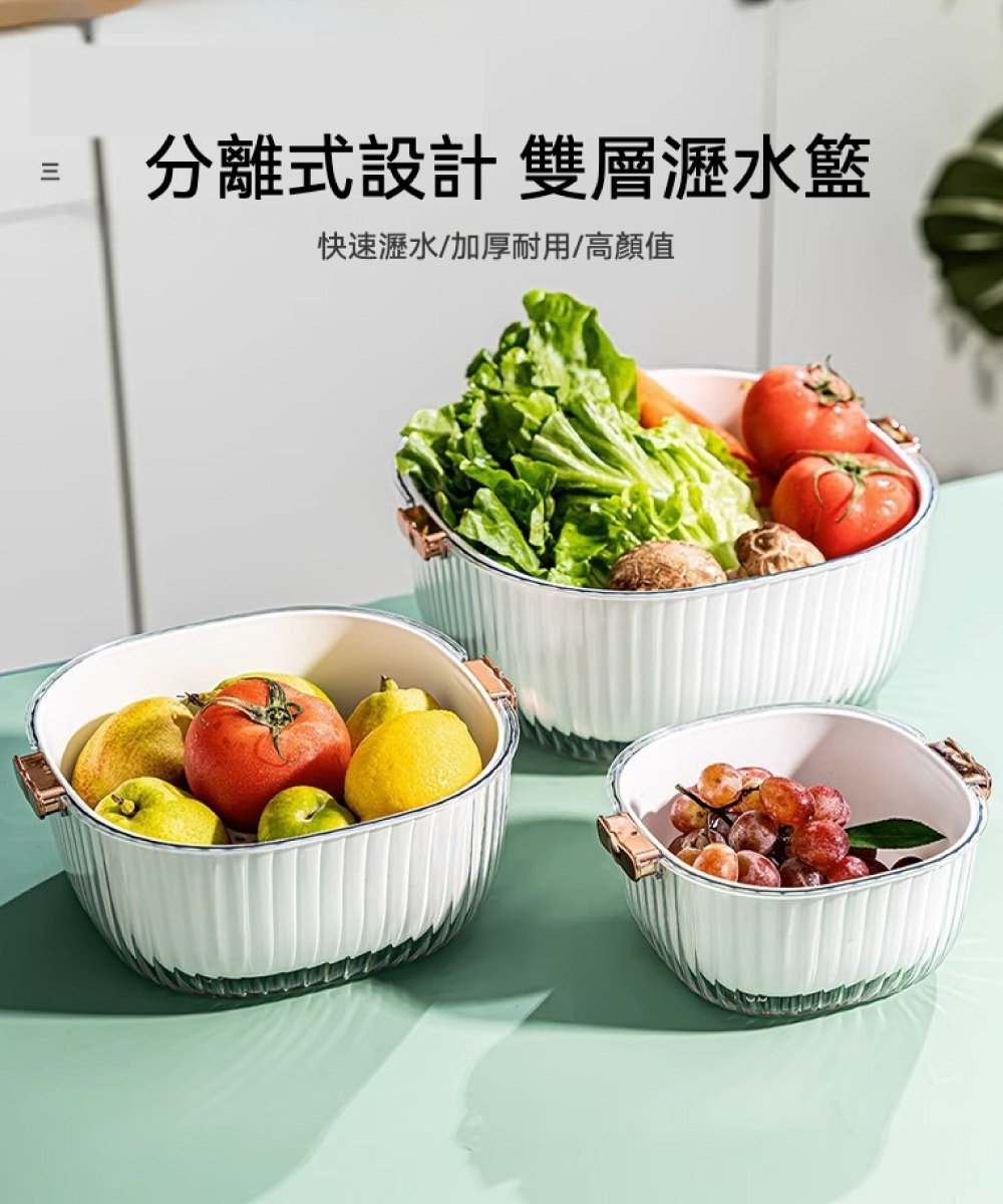 【台灣現貨】家用濾水洗菜盆 水果盤客廳家用濾水洗菜籃 茶桌洗米神器雙層 洗米盆 瀝水盆 廚房洗菜籃 雙層洗菜籃 濾水籃