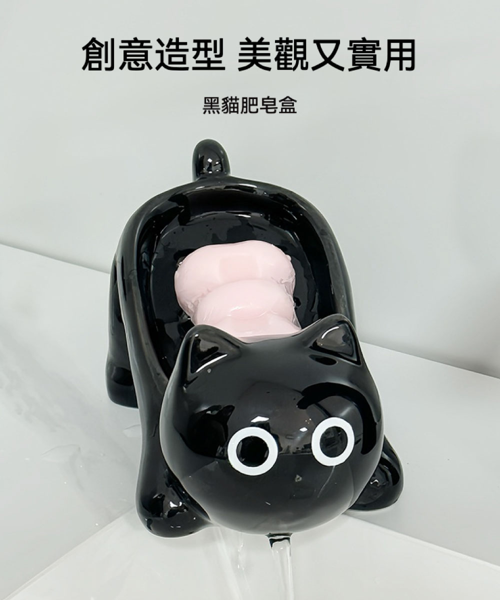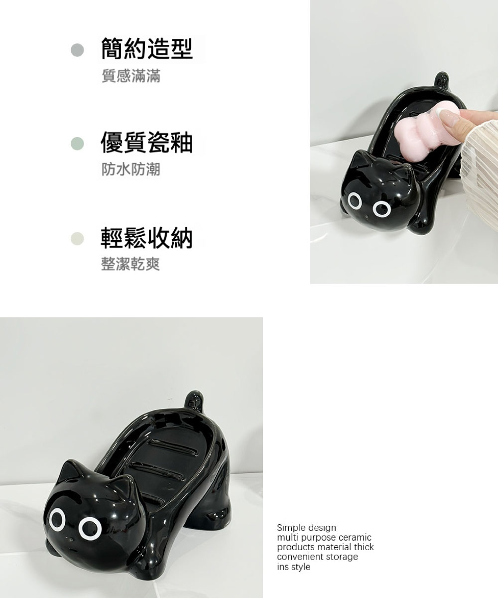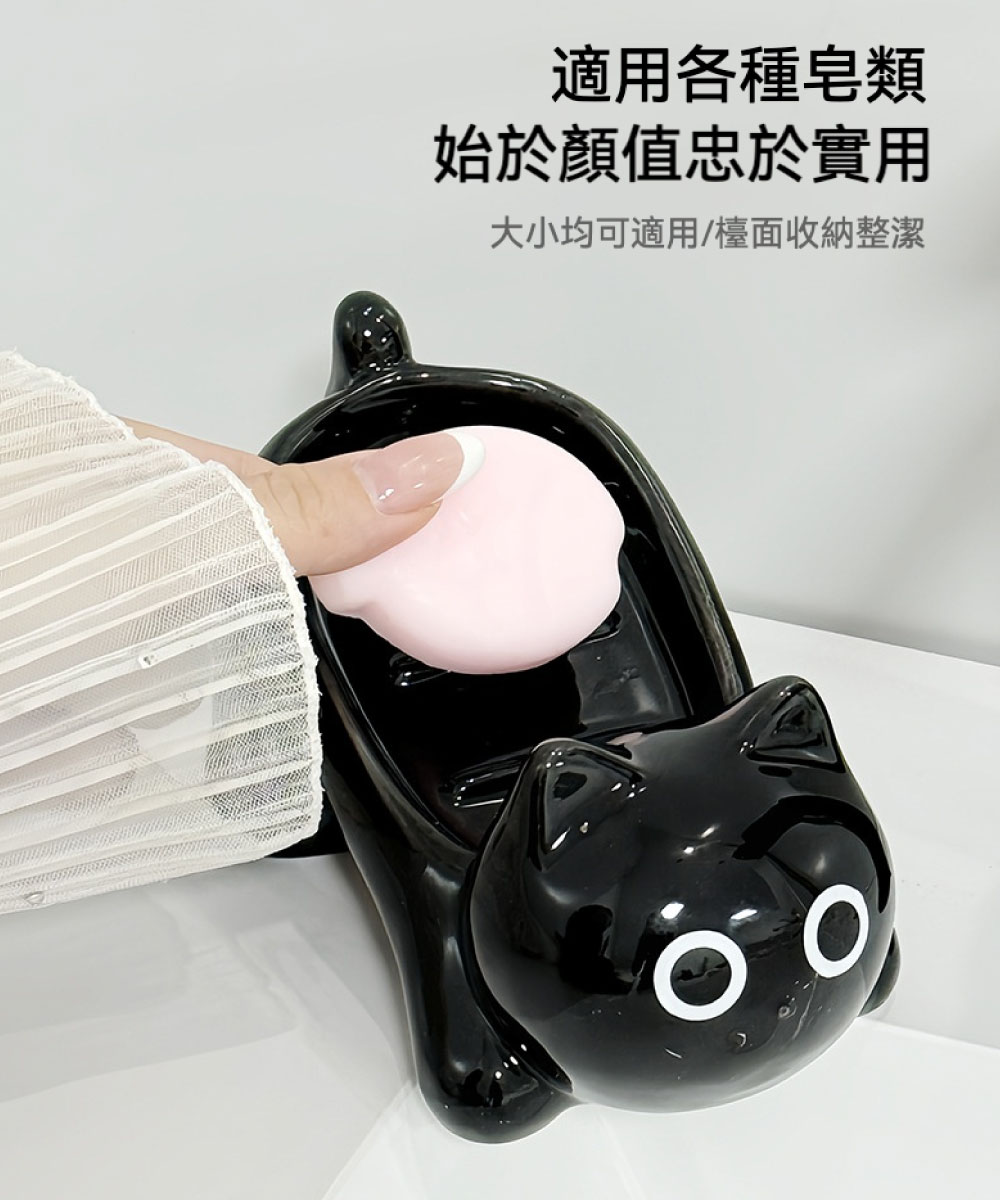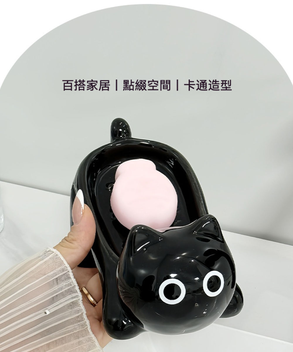 【台灣現貨】黑貓瀝水肥皂盒 家用洗手台 陶瓷香皂盒 廁所香皂置物架 免打孔 廚房香皂盒 肥皂 肥皂托盤 創意造型香皂盒