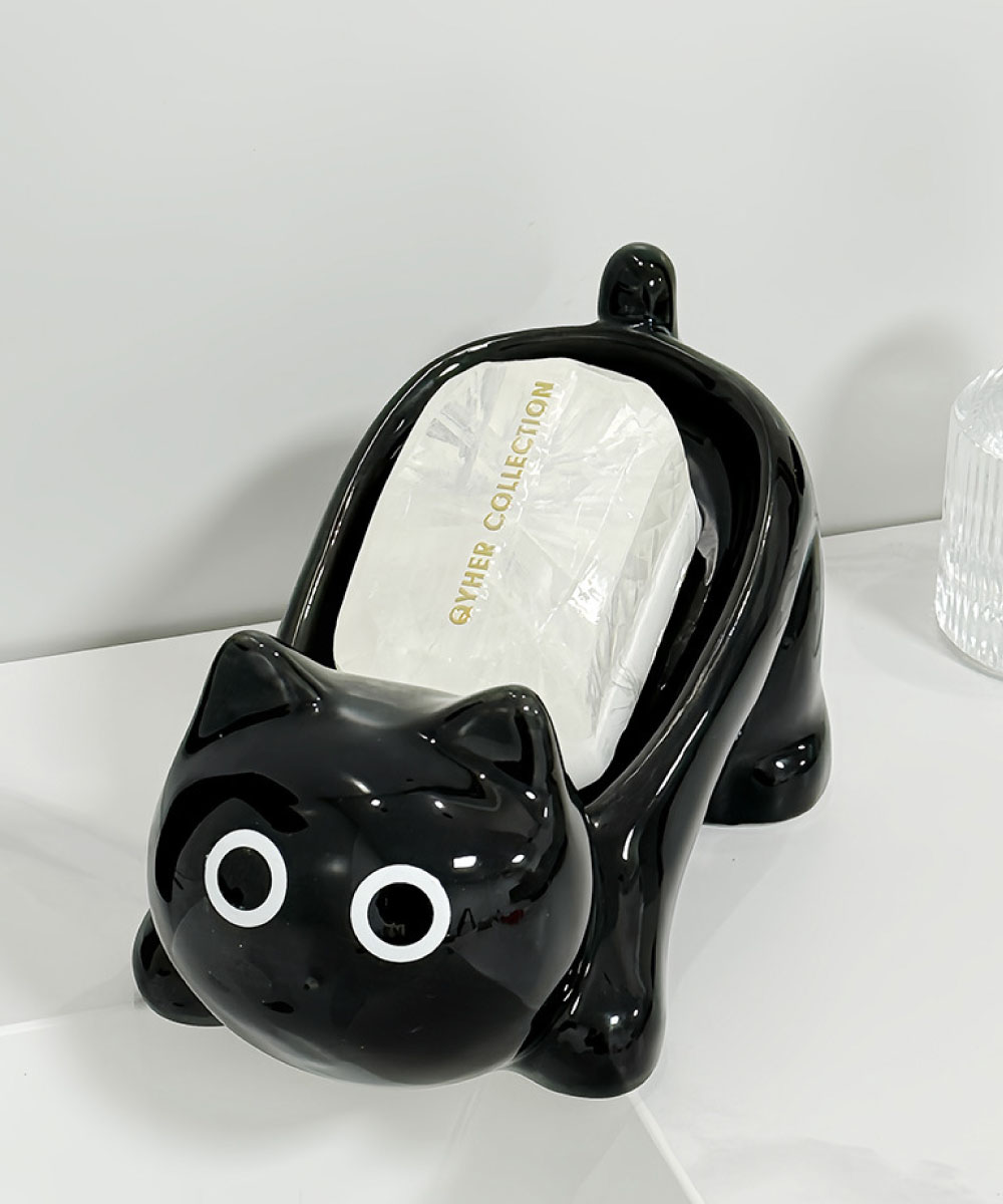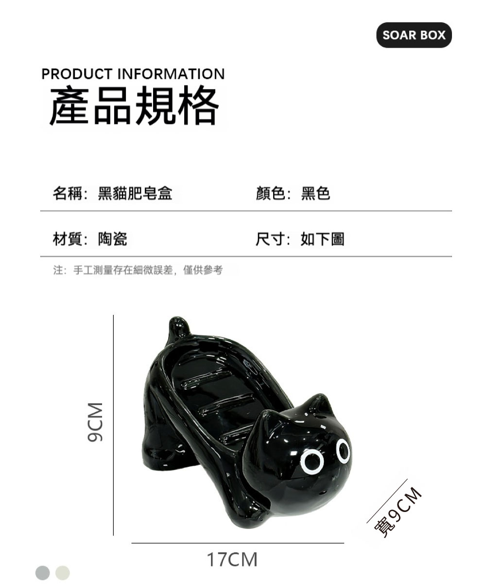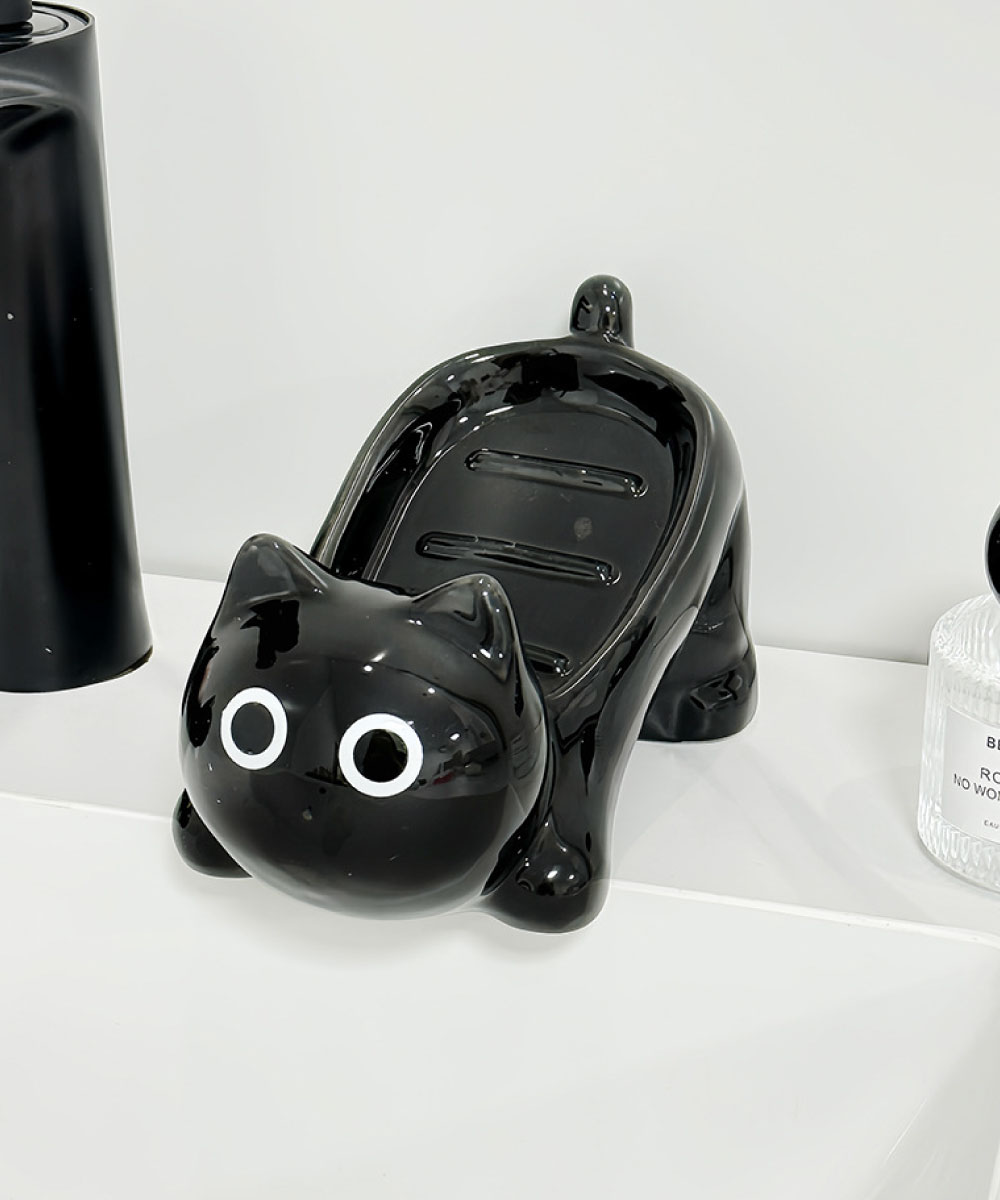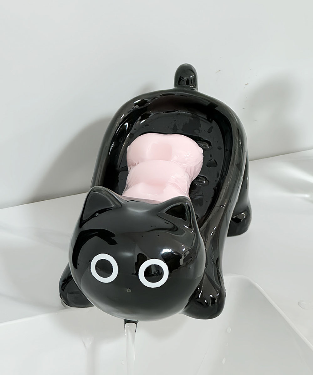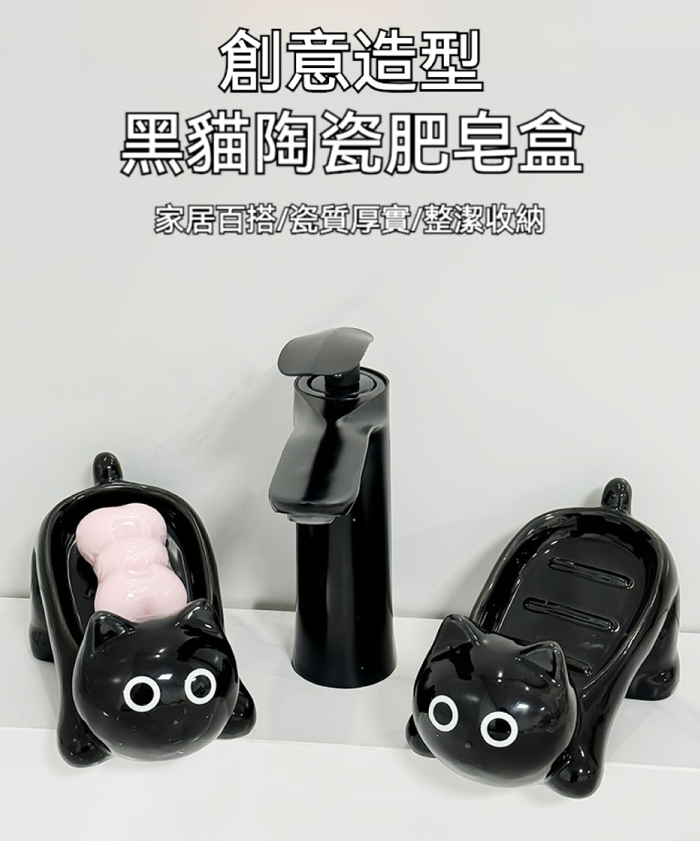 【台灣現貨】黑貓瀝水肥皂盒 家用洗手台 陶瓷香皂盒 廁所香皂置物架 免打孔 廚房香皂盒 肥皂 肥皂托盤 創意造型香皂盒