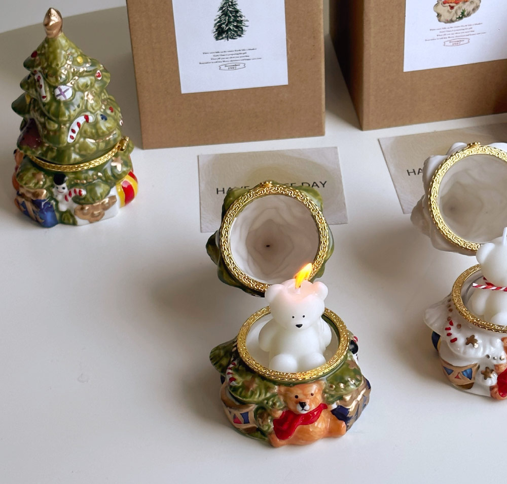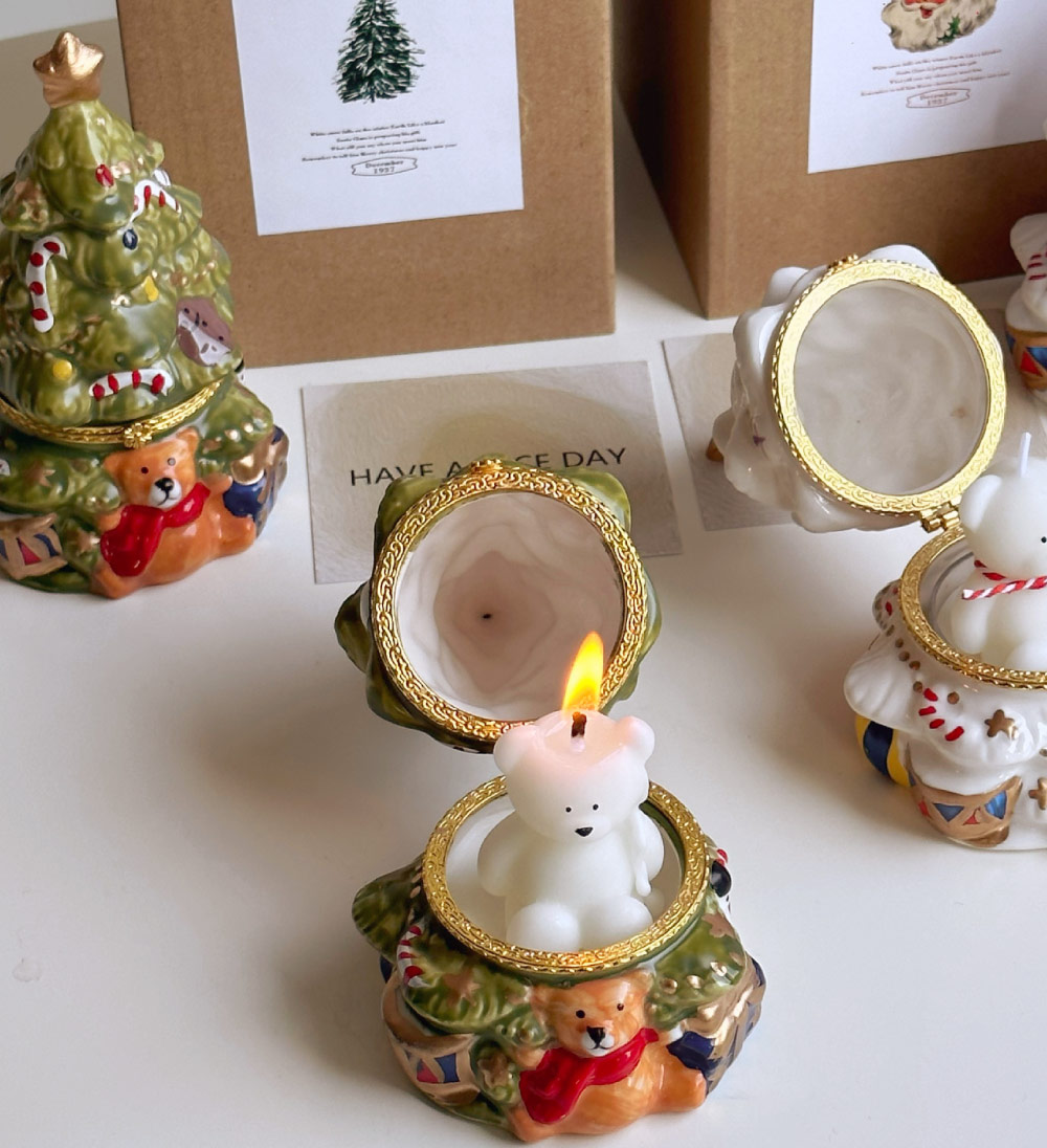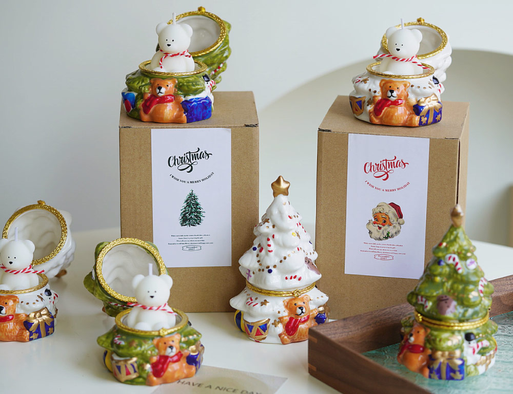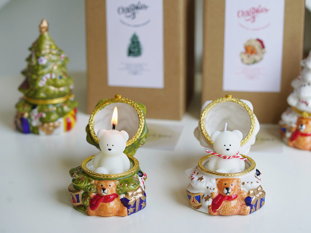 【台灣現貨】聖誕陶瓷小熊香薰蠟燭 聖誕禮物 交換禮物 聖誕香氛蠟燭禮盒 創意蠟燭造型 香薰燭臺 陶瓷擺件 耶誕節 禮物