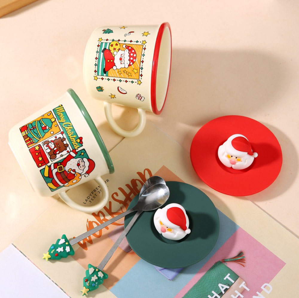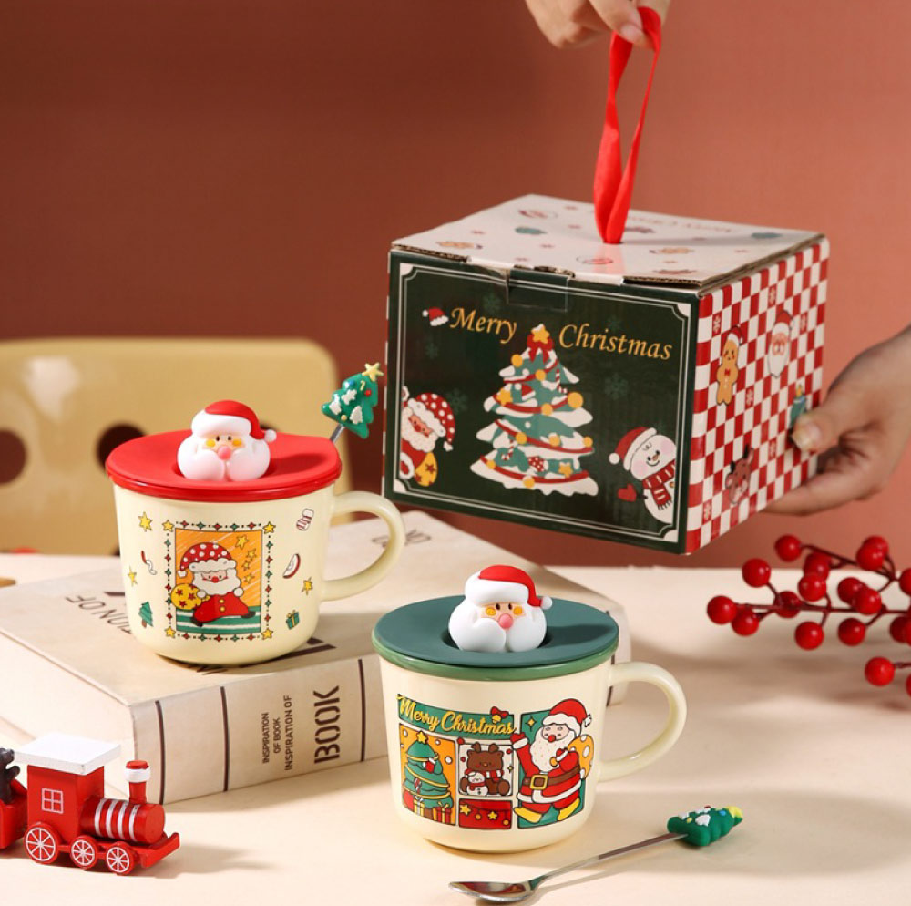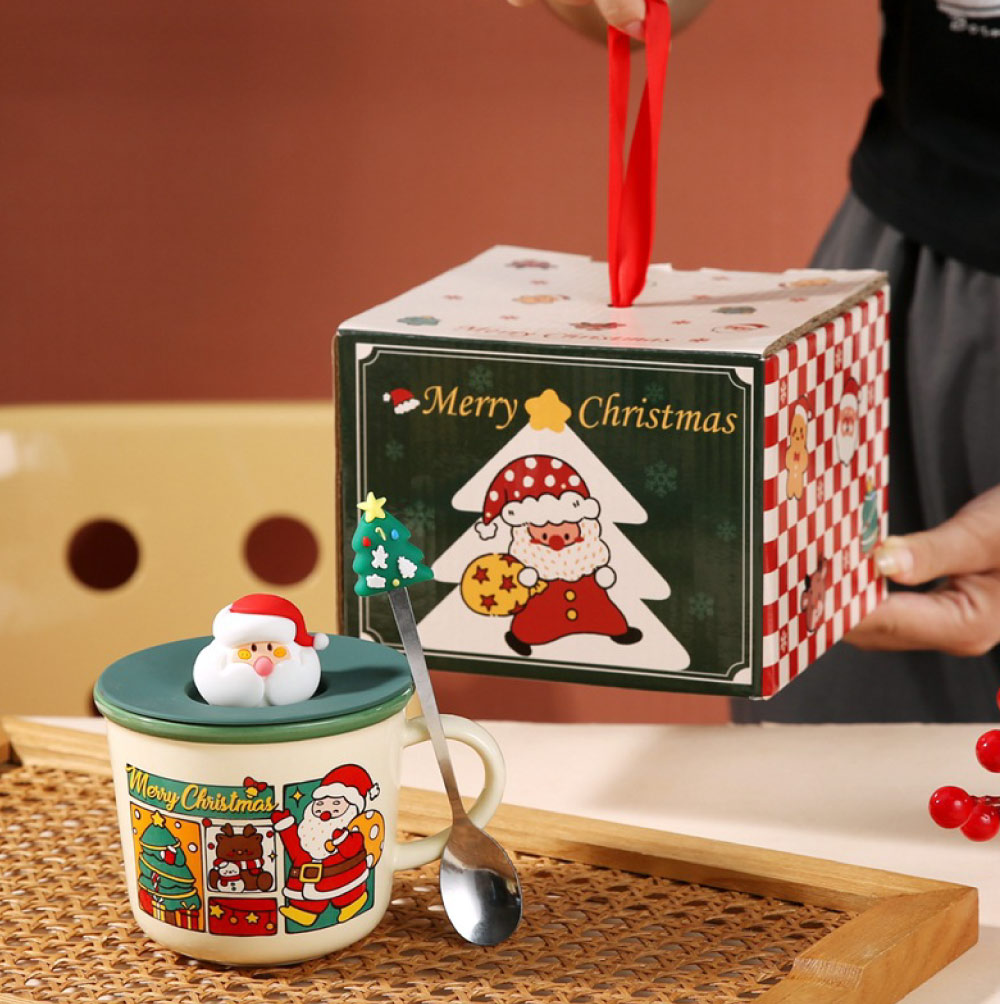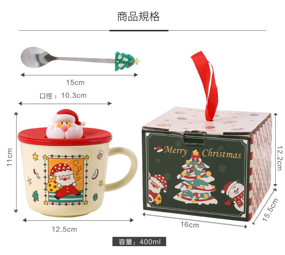 【台灣現貨】聖誕陶瓷馬克杯禮盒 聖誕禮物 交換禮物 生日禮物 情侶閨蜜 可愛造型 帶杯蓋 湯勺 耶誕禮物交換禮物