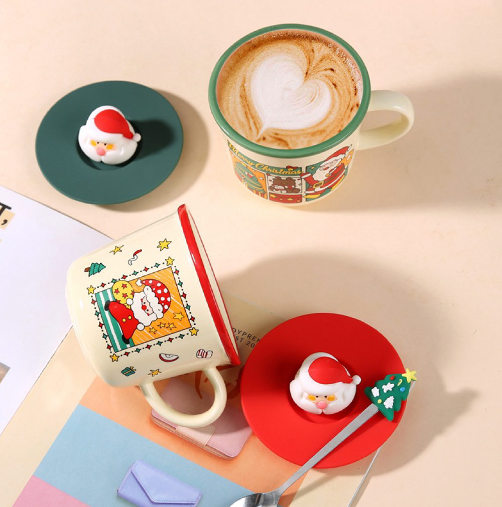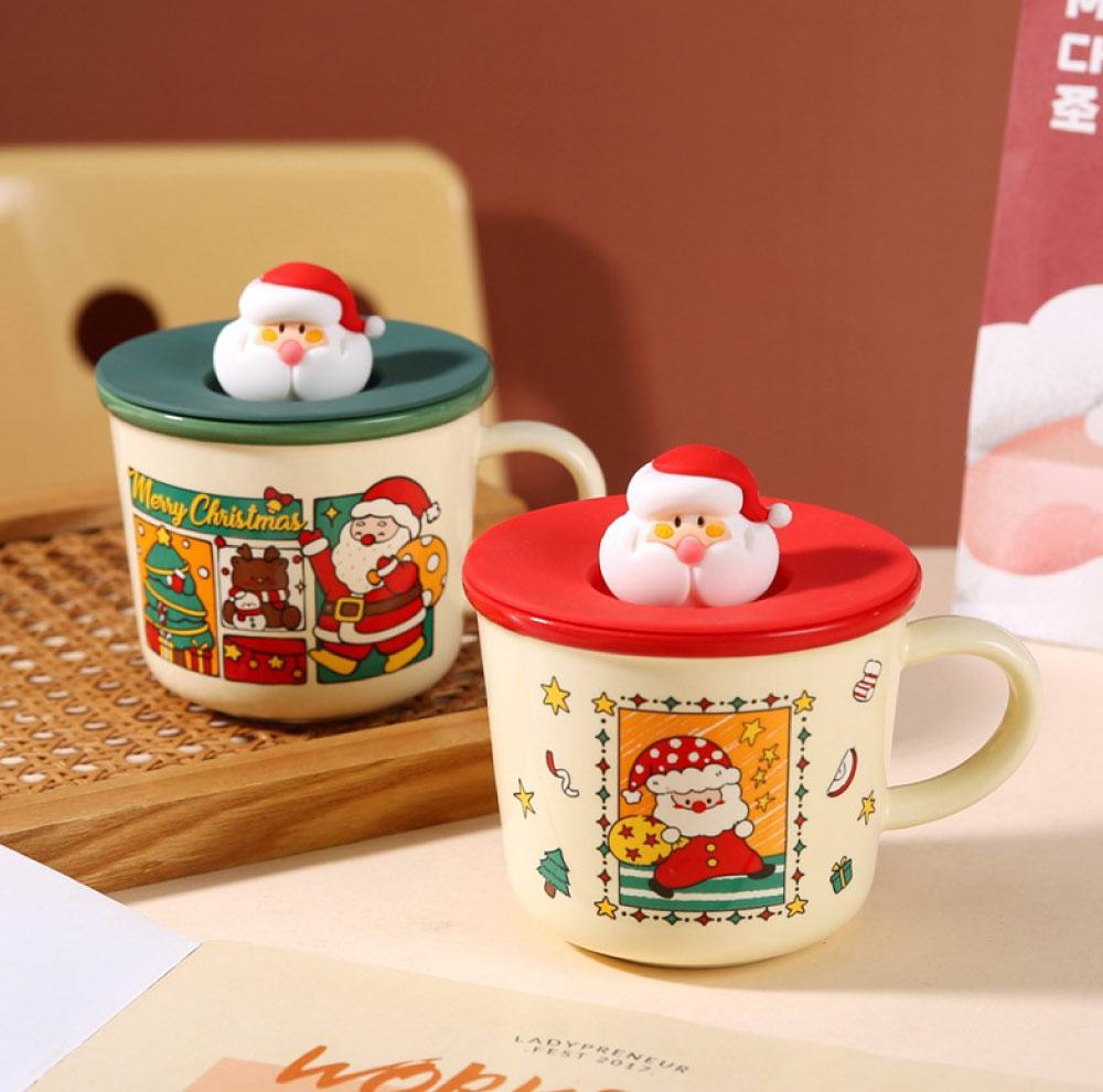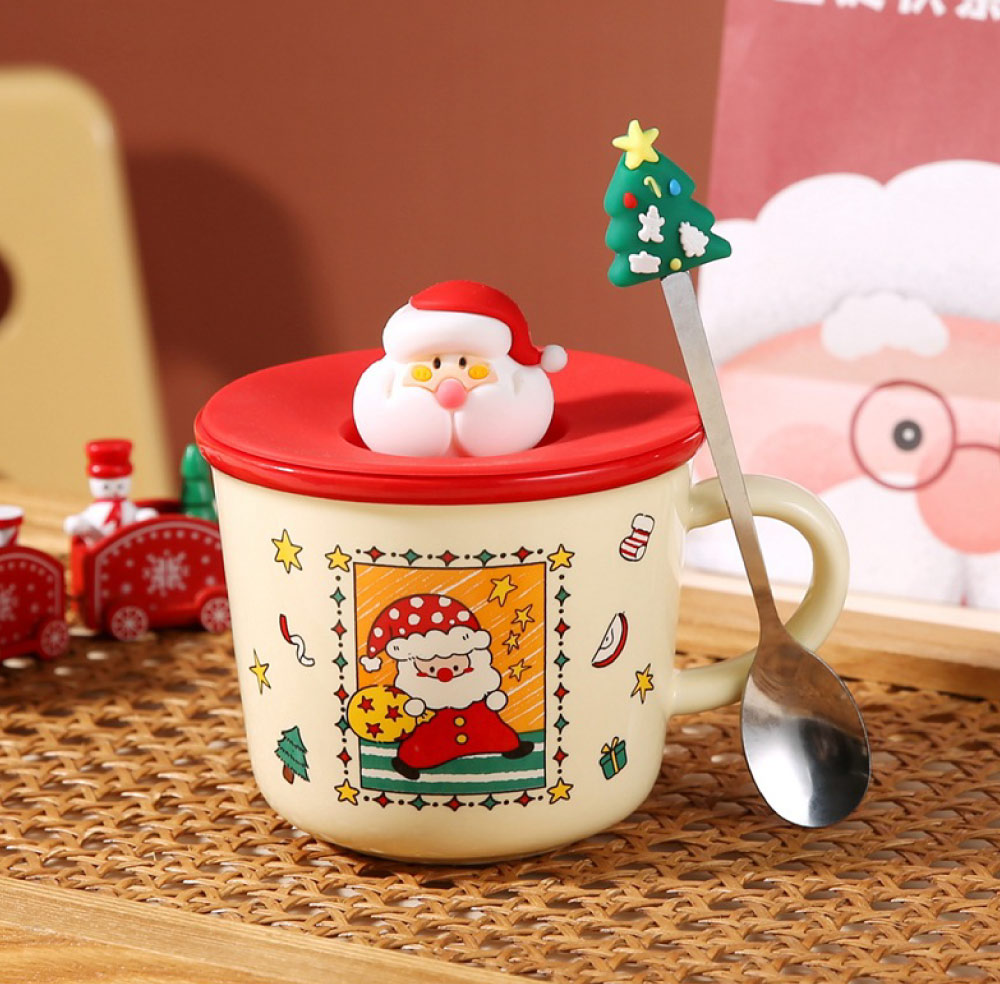 【台灣現貨】聖誕陶瓷馬克杯禮盒 聖誕禮物 交換禮物 生日禮物 情侶閨蜜 可愛造型 帶杯蓋 湯勺 耶誕禮物交換禮物